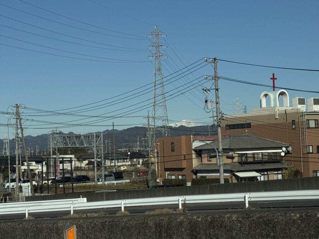 今日は空気が澄んでおり、空が美しく、遠くの山の雪化粧が非常に綺麗だった。